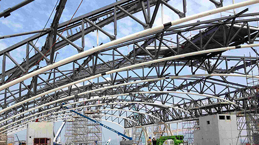 钢结构是磐龙公司致力推广的新型建筑体系,以其用钢量省、建设周期短、安装迅速的诸多特点,成为现代建筑空间结构领域中的佼佼者。公司同时拥有H型钢、箱型柱、十字柱、彩钢板、岩棉板、C型钢、楼承板等多条生产线。